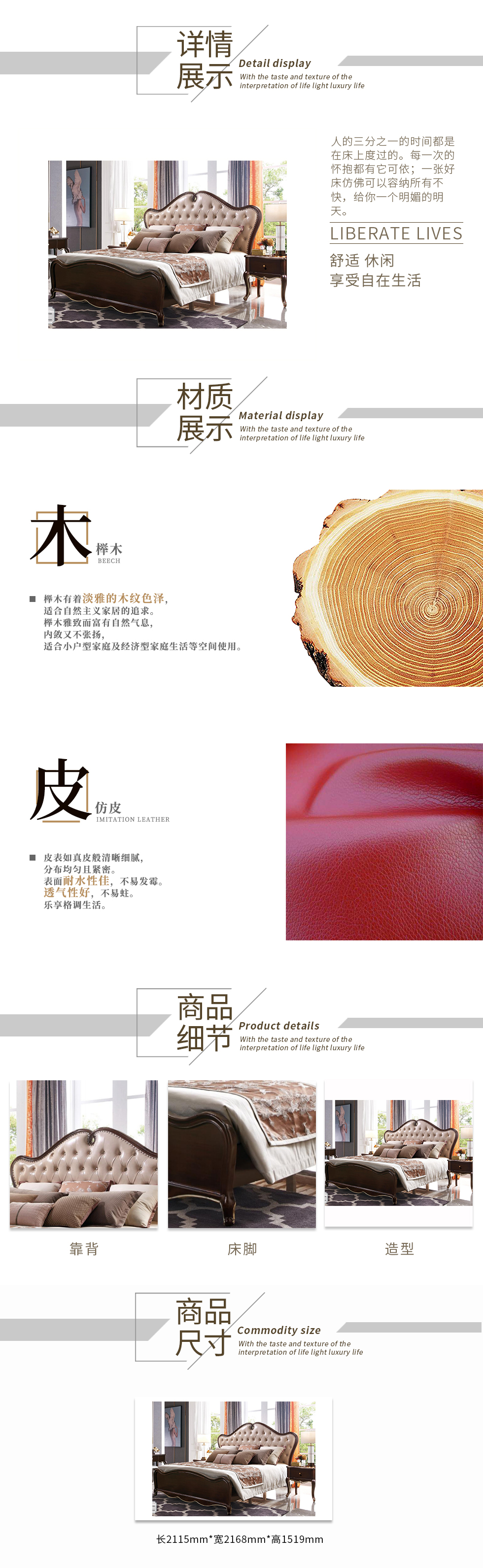 • 美式进口榉木+超纤皮+ 实木排骨架1.8床