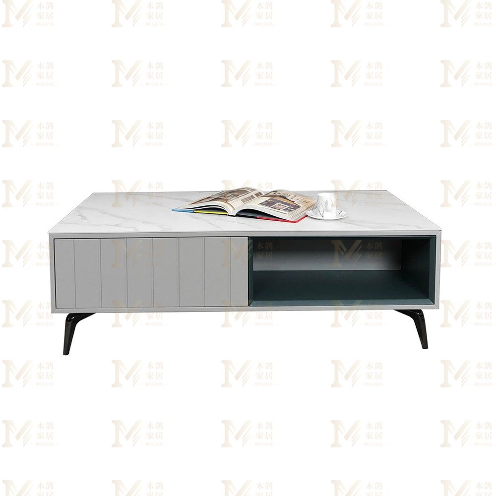 • 现代轻奢五金+岩板+玻璃茶几