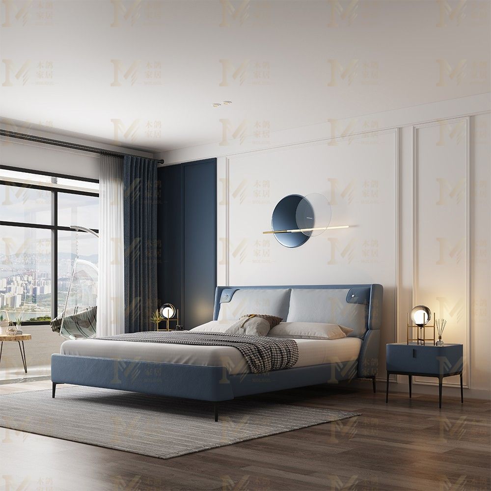 • 现代简约布艺+桉木+科技布+橡胶木+松木床