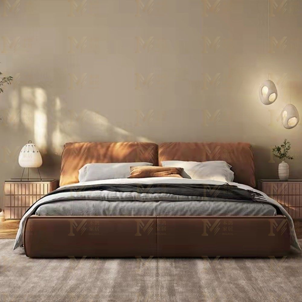 • 现代轻奢超纤皮+松木床