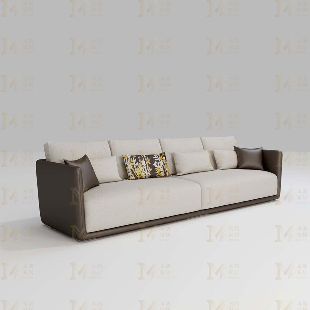 • 美式进口橡胶木+超纤皮+棉麻布+环保高回弹海绵沙发