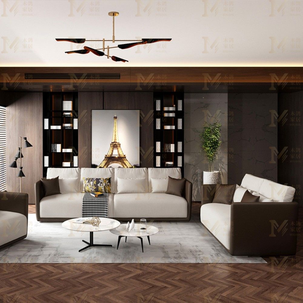 • 现代简约摔纹真皮+碳素钢+落叶松沙发