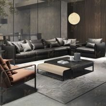 • 极简不锈钢拉丝+黄铜+岩板茶几